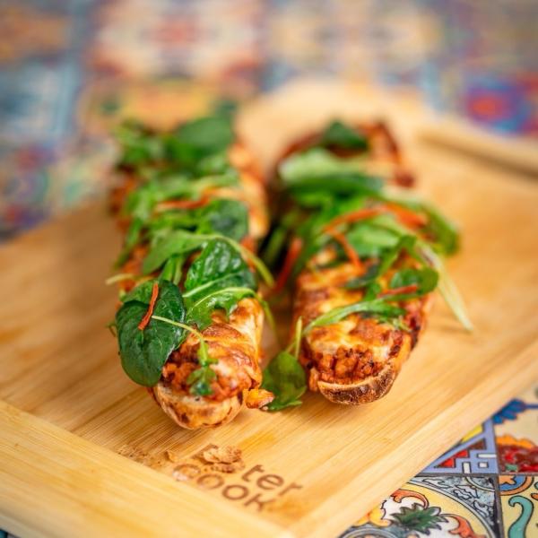 olasz olívás focaccia, négysajtos vajkrém, prosciutto sonka , zöld saláta mix, grillezett koktélparadicsom, mozzarella sajt